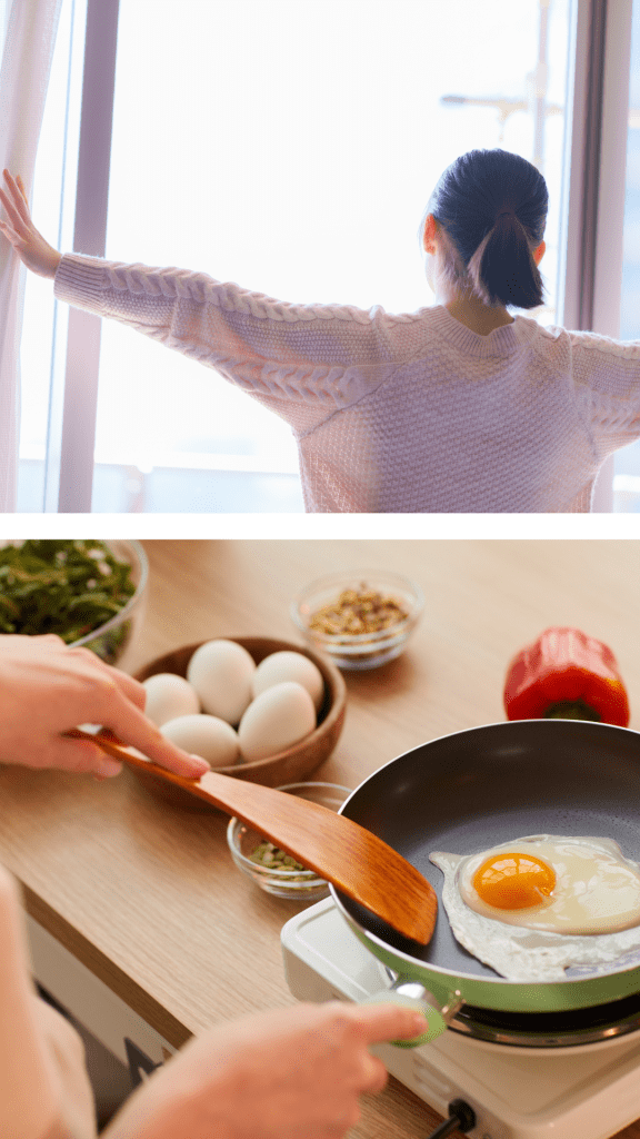Desayuna con intención. Un desayuno rico en proteína estabiliza el azúcar en sangre y evita picos de cortisol que afectan el ánimo y la concentración.